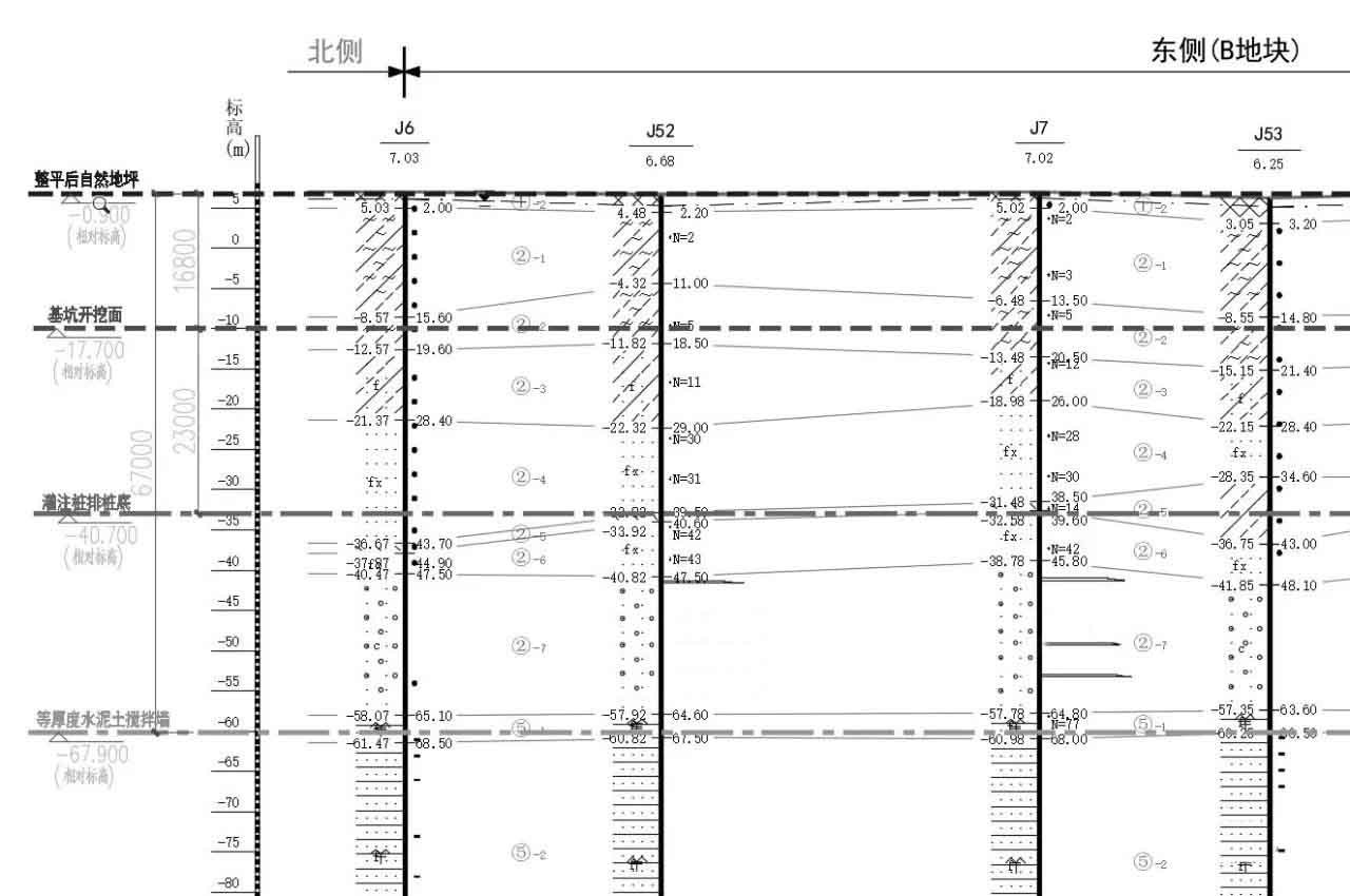 華潤國際社區(qū)商業(yè)綜合體分A,B兩個地塊,此次TRD試樁按照B地塊設計深度67米試驗。