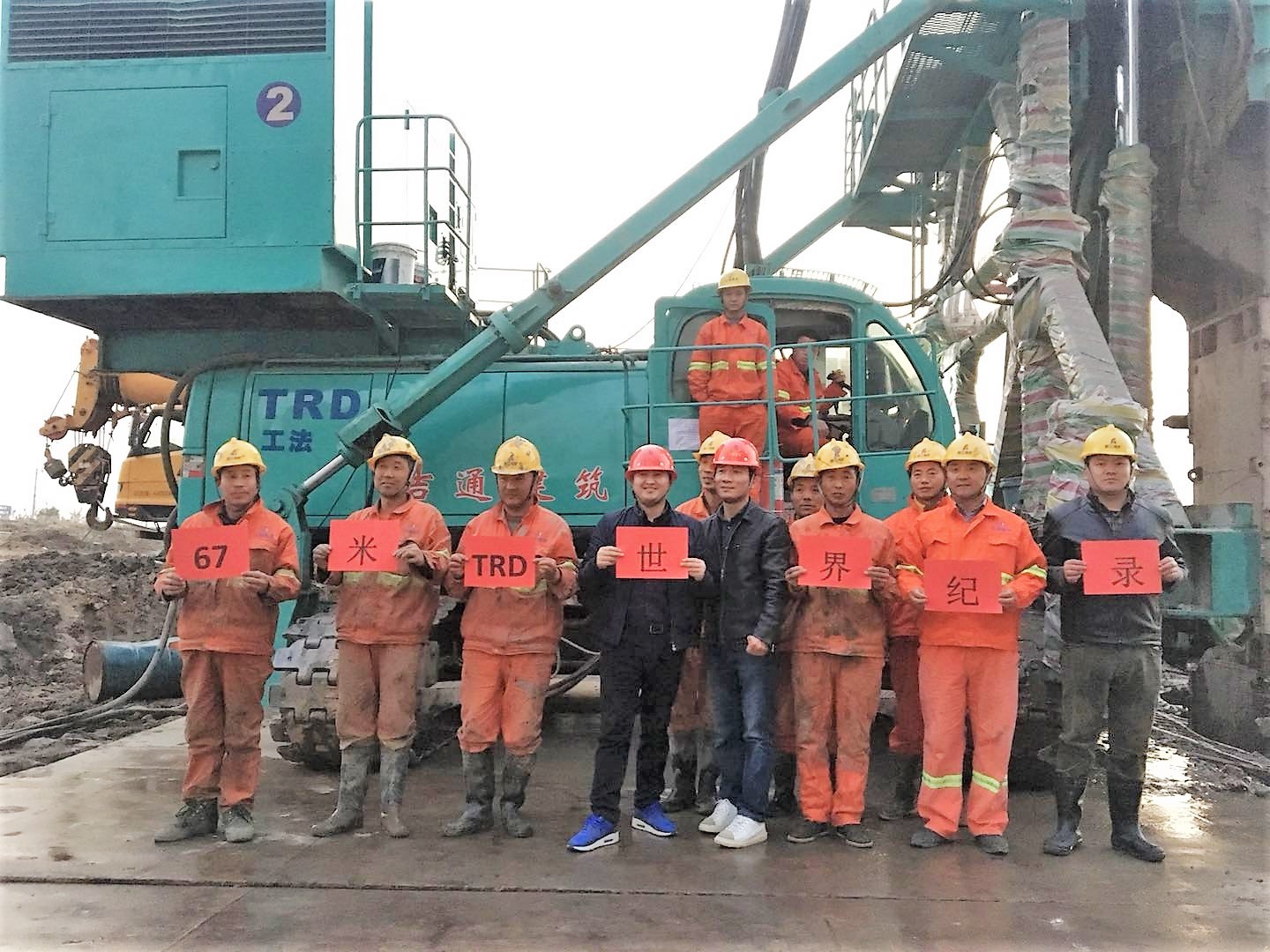 華潤國際社區(qū)B地塊基坑支護之TRD工法試驗墻工程位于南京市江北新區(qū)核心地段,項目設計開挖深度為67米,創(chuàng)下行業(yè)之最,本次工法實驗由吉通建筑2號TRD班組施工,在2017年12月11號進場,2017年12月30號試成墻成功。