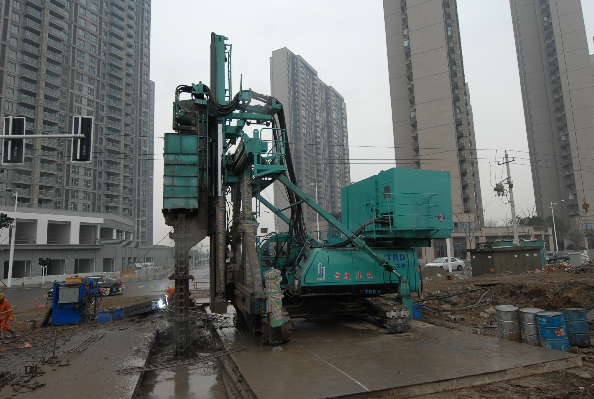 TRD工法通過水平橫向運動成墻,可形成沒有接口的等厚連續(xù)墻體,其止水防滲效果遠遠優(yōu)于柱列式地下連續(xù)墻和柱列式攪拌樁加固,其主要特點是環(huán)境污染小、成墻連續(xù)、表面平整、厚度一致、墻體均勻性好、防滲性能好、施工安全,與傳統(tǒng)柱列式地下連續(xù)墻相比隔滲,經(jīng)濟性好。