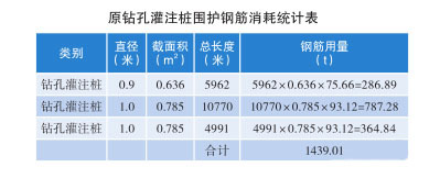 與傳統的鉆孔灌注柱圍護相比,TRD工法圍護體系在節材方面的優勢主要體現在作為芯材的H型鋼可進行回收并重復利用,而鉆孔灌注柱鋼筋籠則被永久遺棄在地下。原圍護體系鉆孔灌注樁的數量及型號見下表: