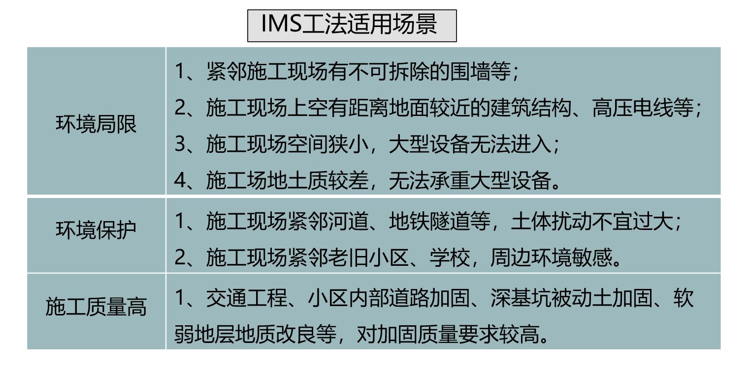 最后,我們對IMS工法這種施工工藝的適用場景進行一個簡單的匯總。