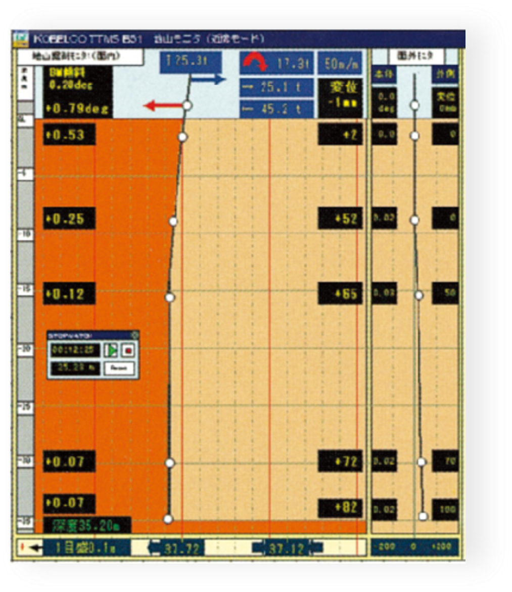 通過(guò)施工管理系統(tǒng),實(shí)時(shí)監(jiān)測(cè)切削箱體各深度X、Y方向數(shù)據(jù),實(shí)時(shí)操縱調(diào)節(jié),確保成墻精度。