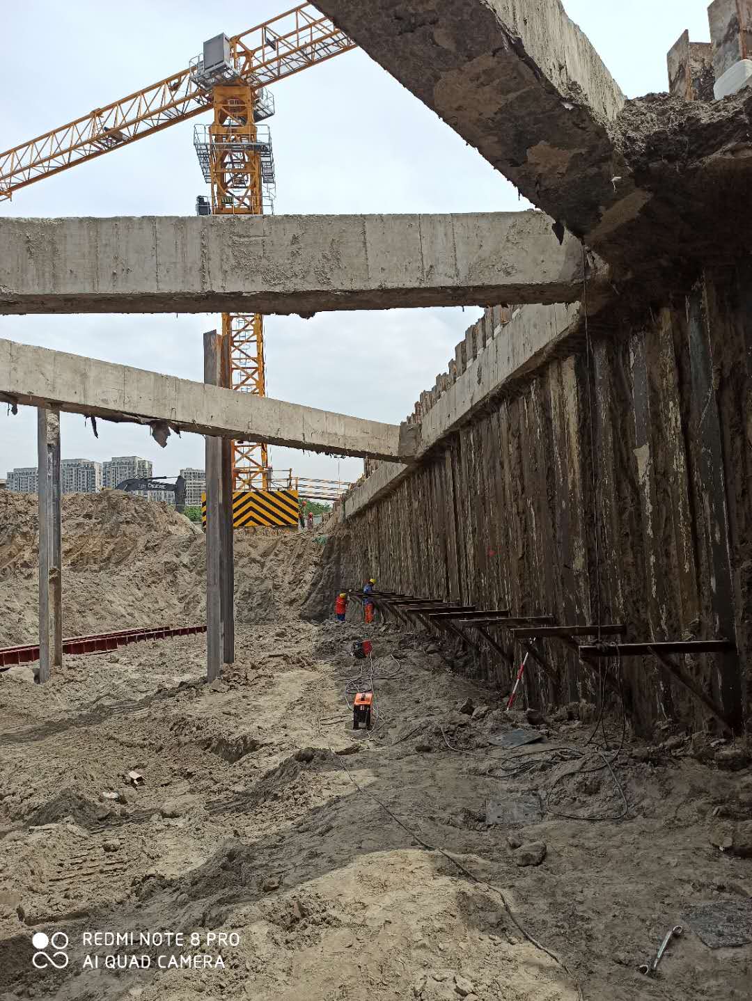 虹軟項(xiàng)目開(kāi)挖深度較大,可達(dá)16.3m,采用了3道型鋼組合支撐作為支撐體系;所有鋼構(gòu)件均在工廠定制,采用伺服系統(tǒng)進(jìn)行軸力自動(dòng)補(bǔ)償,支撐分組安裝,預(yù)應(yīng)力分級(jí)施加,施工過(guò)程中結(jié)合監(jiān)測(cè)和巡查結(jié)果進(jìn)行信息化施工。目前已經(jīng)開(kāi)挖到底,基坑整體情況良好,基坑變形及支撐內(nèi)力均處于設(shè)計(jì)要求范圍內(nèi)。