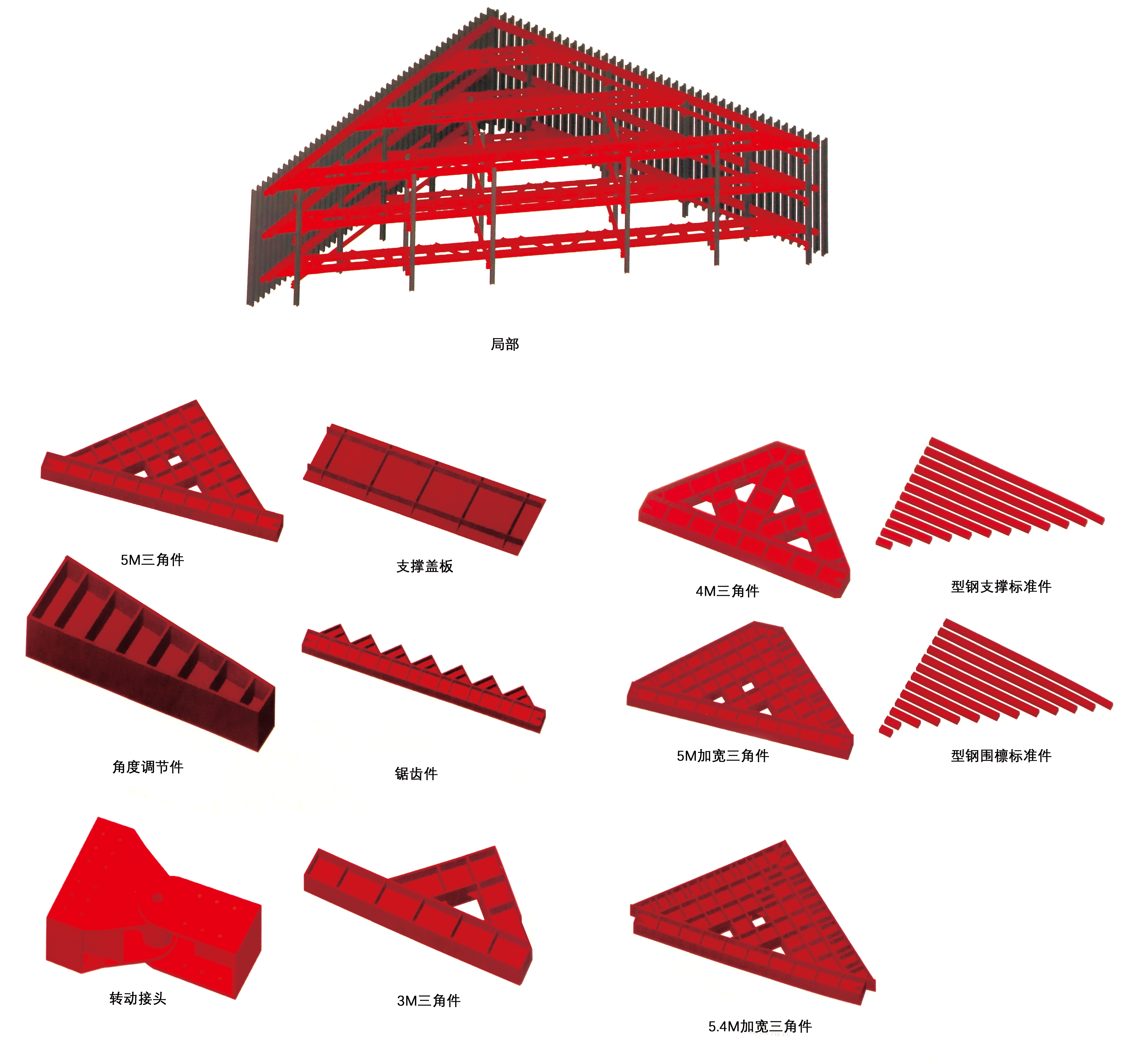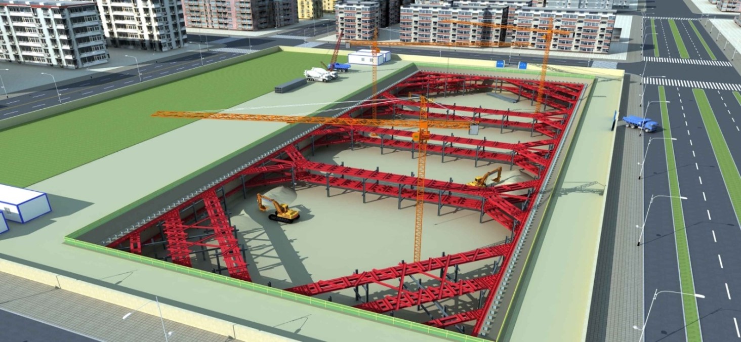 整個(gè)體系主要由對(duì)撐、角撐、圍檁、立柱、支撐梁和連接件組成,可根據(jù)基坑的不同形狀及要求設(shè)置月牙梁、斜拋撐和拱形撐,也可與混凝土支護(hù)結(jié)構(gòu)結(jié)合使用,以滿(mǎn)足各類(lèi)基坑支護(hù)要求。該技術(shù)可廣泛應(yīng)用于地下室、地下車(chē)庫(kù)、地鐵、隧道、綜合管廊等工程。