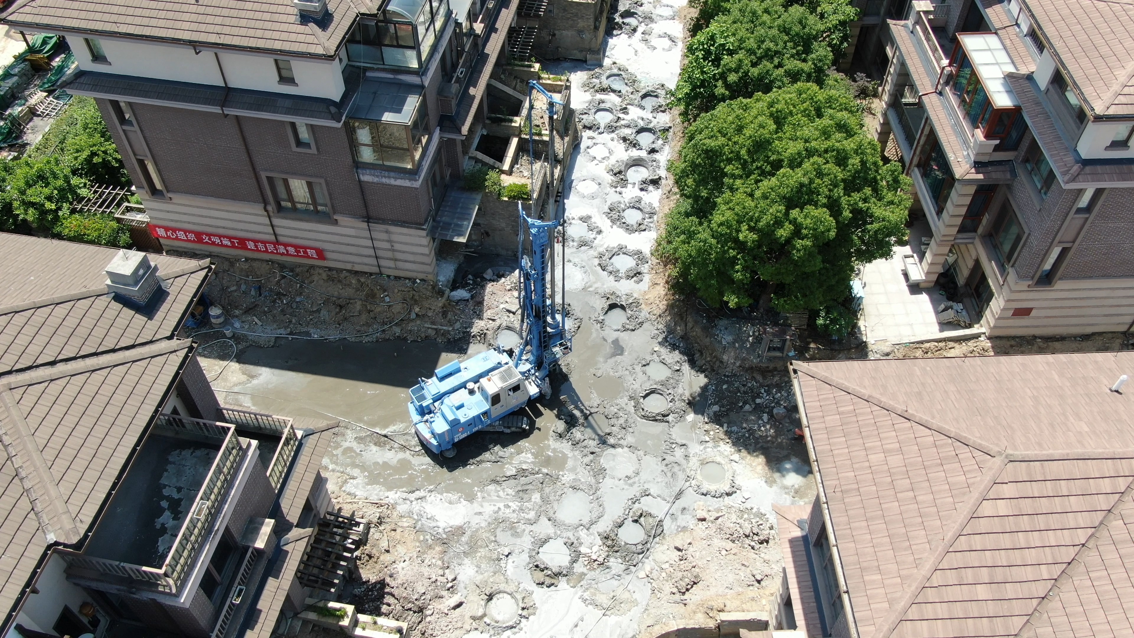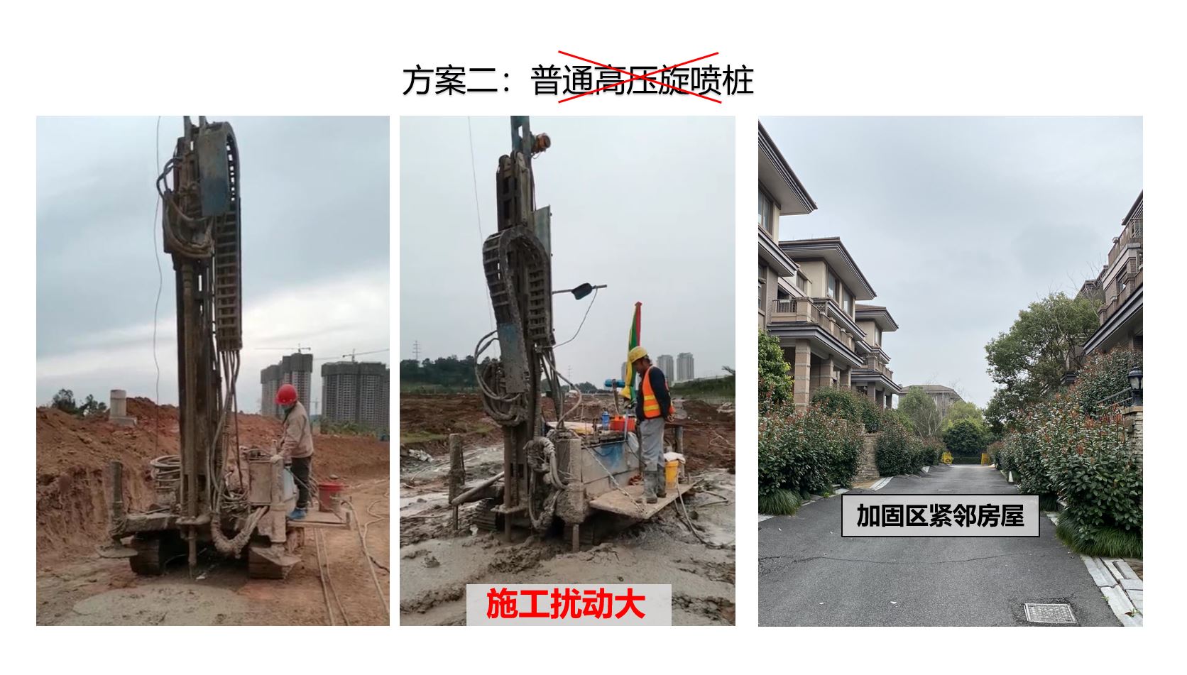 其次是高壓旋噴樁,由于施工場地就在小區(qū)內(nèi)部,大家覺得這種施工工藝對周邊房屋擾動比較大,所以也沒有接受。