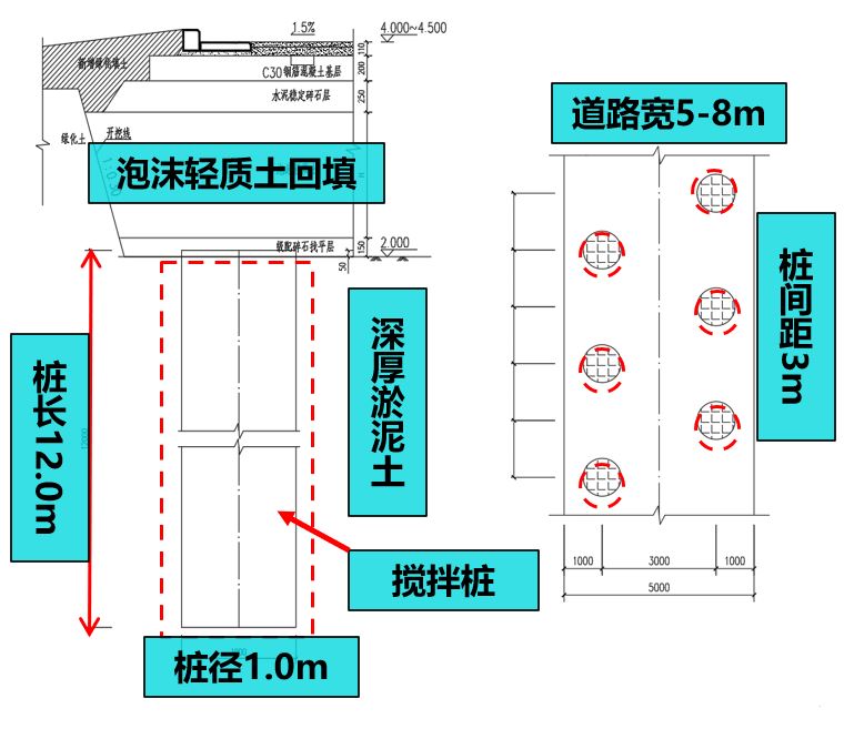 后來經(jīng)過各方的多次協(xié)商,一致決定先采用復合地基進行道路加固,然后對路面進行修復。但是地基加固采用哪種工藝,又成為了新的難題。