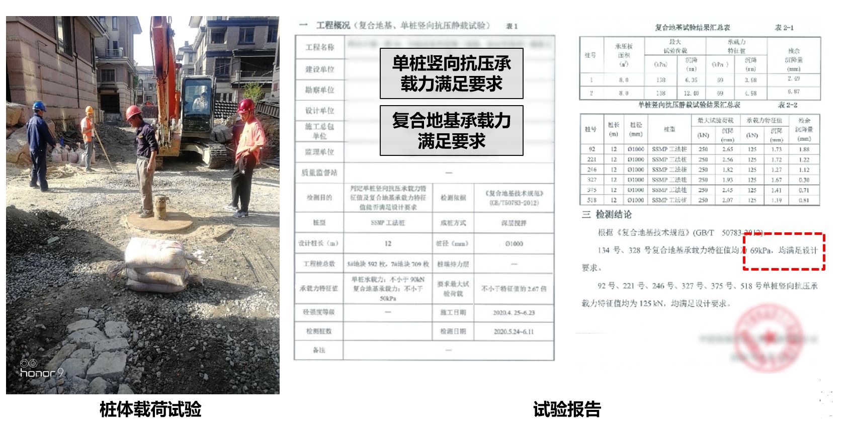 施工完成后,小區(qū)業(yè)主現(xiàn)場隨機抽取IMS工法攪拌樁,進行第三方檢測,結(jié)果顯示,施工后的復合地基承載力和單樁豎向抗壓承載力均滿足設計要求。