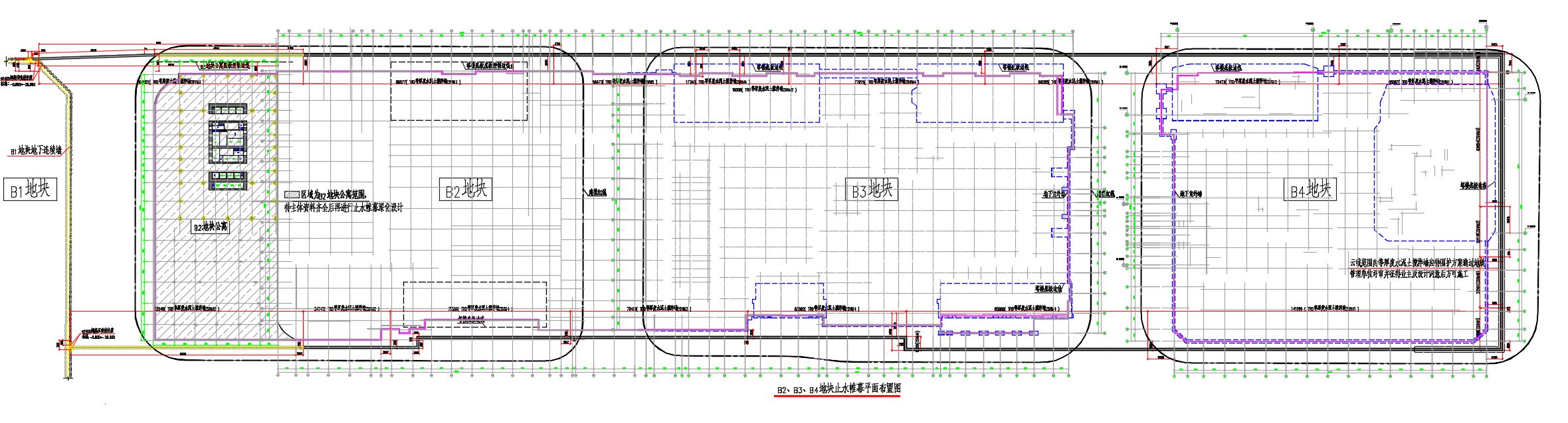 本基坑工程處于長江岸邊500m范圍內,為確保長江汛期基坑工程安全可靠以及順利實施,本工程對B2、B3、B4地塊周邊采用TRD等厚度水泥土攪拌墻作為落底式隔水帷幕隔斷基坑內外地下水聯系。