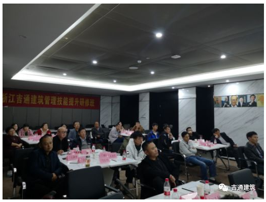 本次課程參加人員涵蓋公司各層級及各部門;吉通建筑董事長江正兵、總經理江海林、常務副總經理張永紅等高層領導攜各部門經理、主管參加。本次課程授課形式精彩紛呈、從理論知識講解到案例分析、從現(xiàn)場問卷測評到積極的員工互動;從形式到內容參加者十分感興趣、原本6小時的課程,延遲到下午將近17點結束。